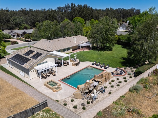 Experience resort-style living in one of the area's most desirable neighborhoods, just a short distance to charming Old Orcutt and located near highly regarded schools. This exceptional property showcases a beautifully appointed main residence along with a detached pool house/ADU, offering the perfect blend of luxury, flexibility, and lifestyle. Fall in love with the spacious family room featuring soaring vaulted ceilings, custom beams, and a stunning brick fireplace that creates a warm yet elevated focal point. The chef's kitchen is designed to impress with granite countertops, custom cabinetry, double ovens, gas cooktop, Sub-Zero refrigerator, butler's pantry, and additional walk-in pantry--ideal for both everyday living and elevated entertaining . Step outside to a truly tranquil, resort-inspired backyard designed to capture optimal sun exposure throughout the day. This private oasis features a stunning pool and spa, expansive stamped concrete, pergola-covered lounge areas, outdoor kitchen, and multiple spaces to relax or entertain--creating an atmosphere that feels like a luxury retreat right at home. The detached pool house/ADU elevates the property even further, featuring high vaulted ceilings, an open-concept layout, and a stunning kitchen. Large, expansive sliders open seamlessly to the patio and pool area, creating an effortless indoor-outdoor flow that is perfect for entertaining guests, hosting family gatherings, and enjoying the beautiful Central Coast weather. The ADU also includes a full bath, tankless water heater, and its own garage, offering both comfort and versatility . Additional highlights include a total of 4 garage spaces, a newer concrete tile roof (2014), and private drive access to both the main residence and guest house, enhancing privacy and functionality. With a low annual HOA, this property offers the rare combination of location, luxury, and lifestyle. A truly exceptional offering where comfort, elegance, and resort-style living come together seamlessly.