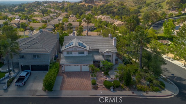 Nestled in a prime Granada Hills enclave, this spacious property offers a two-story residence that blends comfort, flexibility, and indoor–outdoor living. With 5 bedrooms and 3 bathrooms across approximately 3,386 square feet, this light-filled home features soaring ceilings, expansive windows, and an open-concept design that creates an inviting, airy feel from the moment you step inside. The main level includes a desirable 1-bedroom, 1-bathroom suite ideal for guests, in-laws, or a private home office, along with a dedicated laundry room and convenient guest bath. The generous living and dining areas flow seamlessly into a large family room with fireplace and a bright kitchen boasting ample cabinetry, a center island with storage, double ovens, and multiple windows framing tranquil views of the hills. Upstairs, the primary suite serves as a true retreat, offering a spacious sitting area, cozy fireplace, and cedar-lined walk-in closet. Three additional secondary bedrooms and a full hallway bathroom provide plenty of room for family, work, or hobbies. Outside, an expansive patio overlooks scenic canyon and hillside vistas, creating the perfect backdrop for entertaining, dining al fresco, or simply unwinding under the beautiful California sky. Low-maintenance landscaping, central A/C and heat, a 3-car attached garage, and solar panels enhance everyday comfort and efficiency. Located near top-rated schools, parks, hiking trails, and convenient freeway access, this generously sized Granada Hills home presents an exceptional opportunity to customize and make it your own.